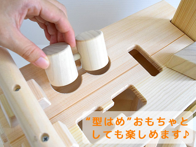 乗用おもちゃとしてだけではなく、型はめおもちゃとしてもお楽しみいただける作りになっています。