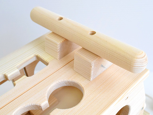 本体・ブロック共に、丁寧に面取りが施されており、また無塗装の白木ですので舐めても安心安全です。