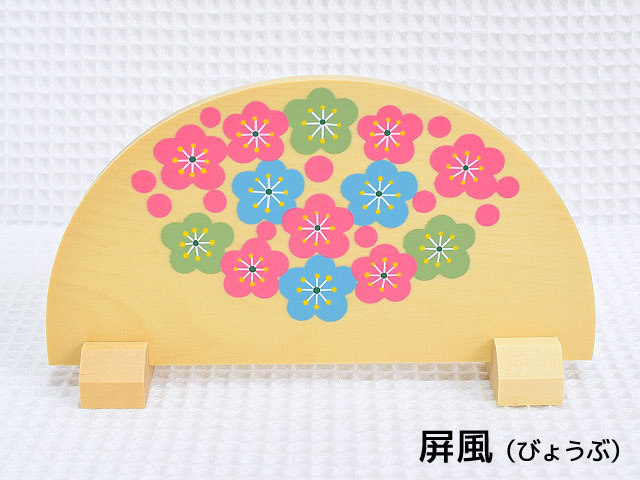 ■内 容:男雛、女雛、屏風、雪洞、菱餅、お花(桜・橘)、飾り台、もうせん、木札